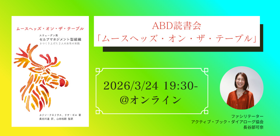 2月17日に発売された『ムースヘッズ・オン・ザ・テーブル スウェーデン発セルフマネージメント型組織をつくり上げた2人の女性の実践』に関するABD(アクティブ・ブック・ダイアログ)形式の読書会。